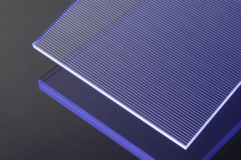 Polyscale ermöglicht flächige Lösungen auf Basis von mikrostrukturierten Kunststoffflächen. Per Kanteneinspeisung gelangt das Licht in die Platte bzw. Folie und wird über die speziell berechnete Strukturierung ausgekoppelt. Diese Auskopplung kann sowohl diffus als auch gerichtet erfolgen.